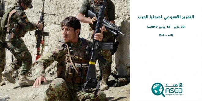يغطي هذا التقرير الوضع الميداني في أفغانستان لفترة أسبوعين اعتباراً من تاريخ (30 مايو إلى 12 يونيو) من عام (2019م)، ويمكنكم قراءة ضحايا القوات الحكومية والمعارضة المسلحة والمدنيين خلال العناوين المنفصلة التالية: