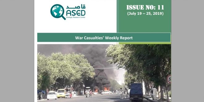 This report covers the casualties of security incidents in the country, which have been occurred during 19 – 25 July 2019.