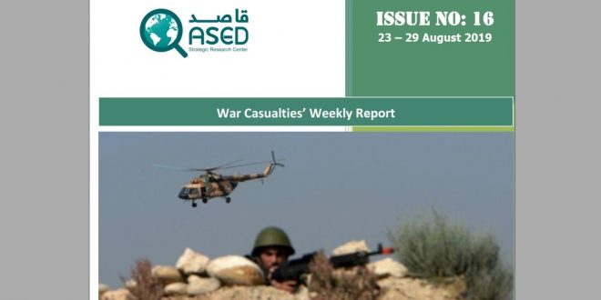 This report covers the casualties of the ongoing war, which have been occurred in different areas of the country during 23 – 29 August 2019.