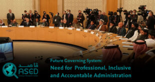 - The second point is that an inclusive government must be formed, meaning that including women, different ethnic, religions and social groups should be involved and participate in the decision making of the state agencies, and that fair distribution of resources to all citizens should be guaranteed. The nature of government, timelines for formation of the government and the right of the people to participate in the political process, are important factors to determine the future of Afghanistan and to turn the dynamics of rivalry from war into a political struggle that will result in stability and prosperity. Unfortunately, in the modern history of Afghanistan, party-centric governments have been the main cause of conflict, as political power has been used for personal and partisan privileges; the reason due to which many individuals and parties are fighting at all costs to gain political power and stay in power.[7]