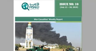 (Issue: No. 6) Introduction QASED Strategic Research Center closely monitors the casualties of civilians and the involved parties due to war and security incidents on a weekly basis. The casualties’ figures that happened due to the war in the last week have been collected based on the confirmed information and …