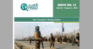 (Issue No: 11) Note: You can download the PDF format of the report from here. Preface This report covers the casualties of security incidents in the country, which have been occurred during 19 – 25 July 2019. Last week’s report shows that the casualties of both sides and civilians …